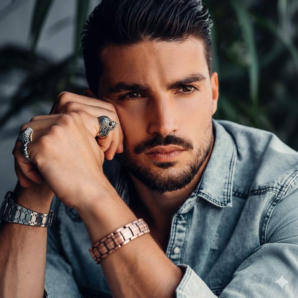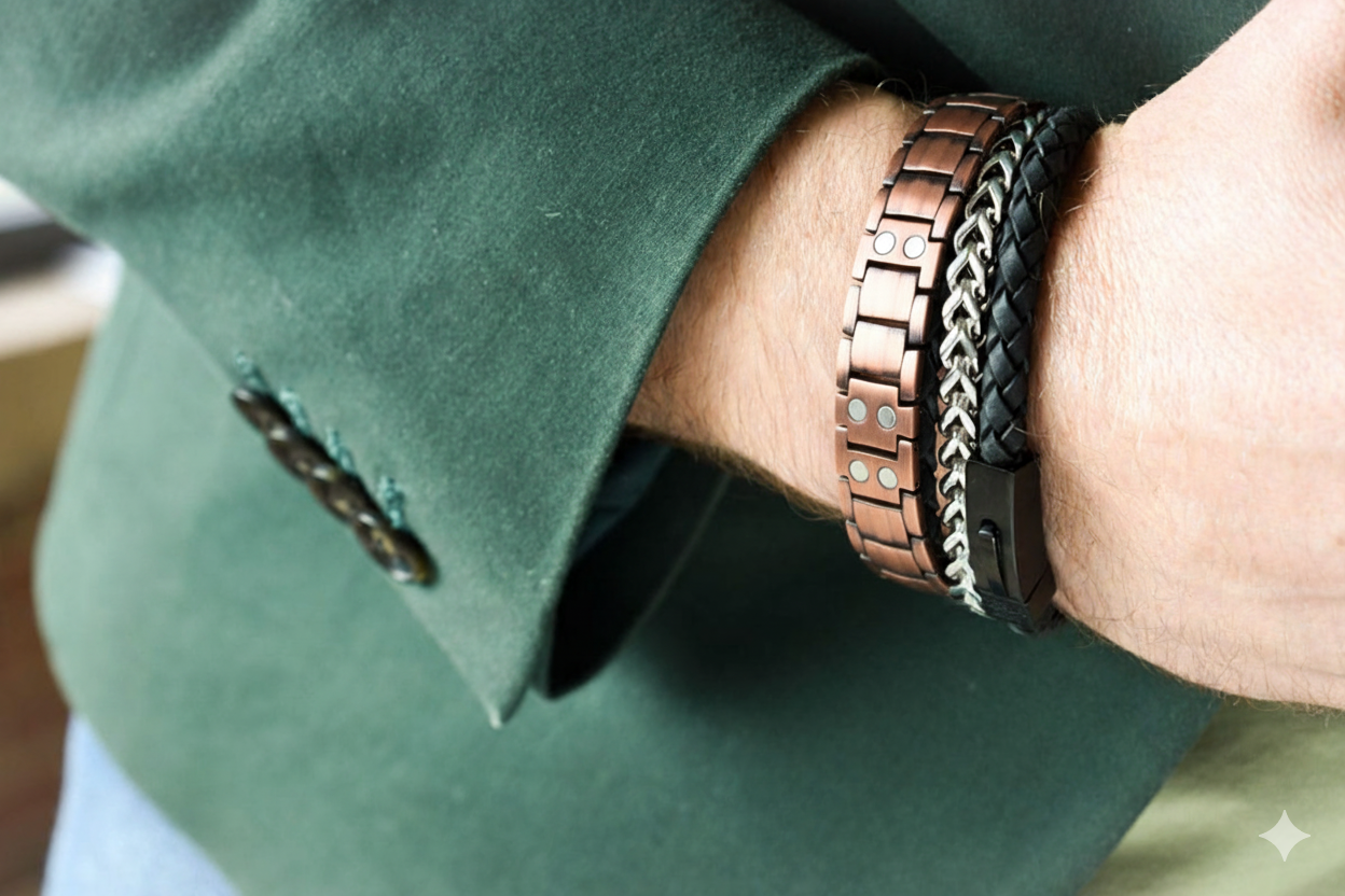 "NeuroCopper™ – Designed for wellness, approved by doctors. Pure copper works naturally to support joint comfort, circulation, and overall hand mobility. Perfect for men who want both style and a small wellness boost every day."